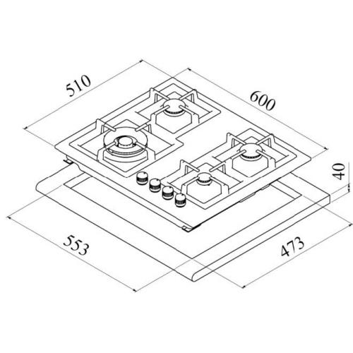 Plit? pe gaz, 60 cm, 4 zone de g?tit: 1 arz?tor